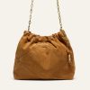 – Large model – Pleated details on the top- Soft material- Antique gold- or silver-colored brass tubes developed especially for ba&sh- Diamond metal chain on the shoulder- Many artisanal details- Signature diamond-shaped cutouts at the front- Double shoulder strap- Hand-braided strings- Diamond-shaped topstitching- Carried by hand, on the shoulder or across the body- Dimensions : 35x 45 x 13 – Strap amovible – Made in Italy- Material: Italian leather from tanneries audited by the Leather Working Group with mineral tanning
