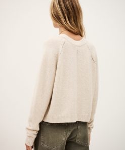 – Boxy cut- V-neck- Long raglan sleeves- Gold buttons- Mouliné knitThis model contains recycled cashmere.