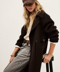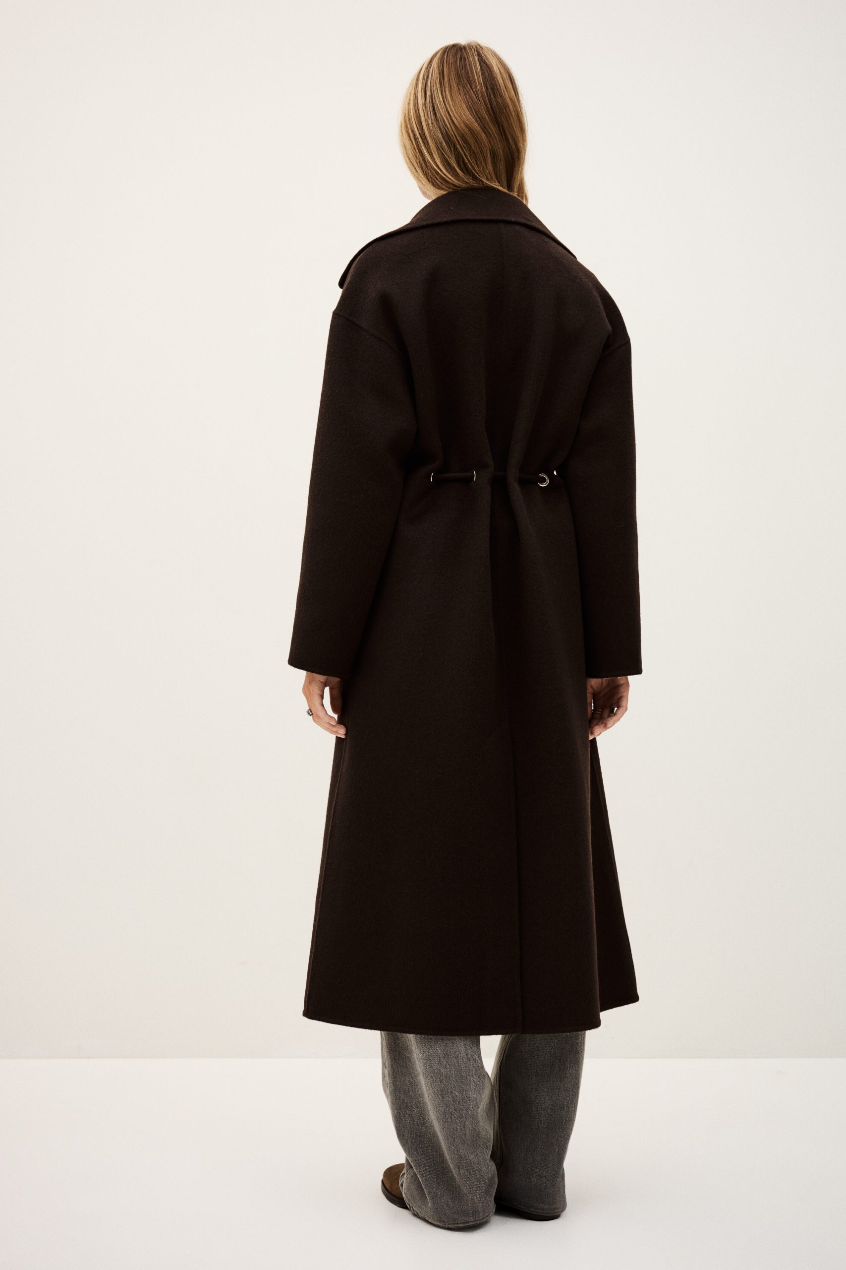 – Midi length- Wide V-shaped collar- Drawstring waist- 2 piped pockets- Rear slit