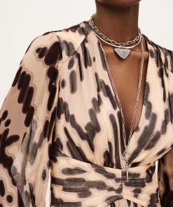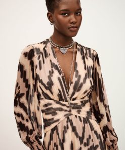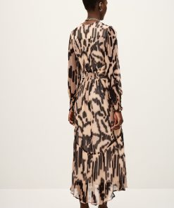 – Wrap-over style V-neckline- Print- Comfy smocked back- Sheer voile- Gathered effect with asymmetrical tier- Corset style belt with darts- Gathered sleeves with smocked cuffs- Fully linedThe viscose in this model is made from wood pulp from sustainably managed forests.