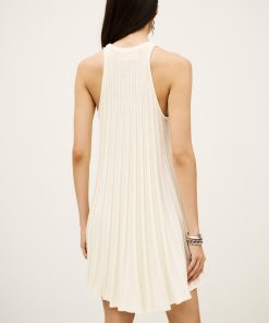 – Sleeveless- Knit- Racerback- Trapezoid cut- Textured sunray style knit: jersey, moss stitch, pointelle knit