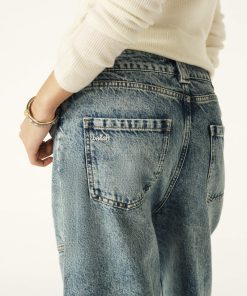 Our MELLOU jeans are feminine, casual, and unique. These faded blue denim jeans are made with super wide legs for the utmost in comfort. They feature two front and two rear pockets, and large loops for adding a wide belt. We love their contrasting topstitches. So chic! Feel free to wear these jeans with a snug-fitting T-shirt or a short sweater, and throw in some sneakers or boots (or ankle boots!). – Wide-leg jeans- Faded blue denim- 2 large pockets in front- Zipper fly + button