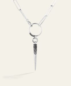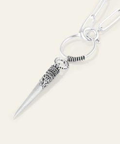 Joyfully free-spirited, ba&sh jewelry celebrates women, style and freedom with a finely nuancedbohemian jewelry collection. You’ll fall for this ba&sh NAOMIE necklace with ancient inspirations. A perfect blend of modern and exotic. This recycled solid silver necklace pairs a long minimalist large-hoop chain with apointy pendant with laser-etching. A necklace that can be worn long or looped twice around the neck. – Recycled sterling silver necklace and pendant- Gold plated version: recycled solid silver necklace with gold plating- Size: chain length approx. 80 cm / pendant length 7.7cm- Lead-free, nickel-free- Delivered in a beautiful pocket with a QR Code so you can discover the ba&sh jewelery story. These pieces of jewelry are delicate objects items. Follow these guidelines to preserve their original beauty for as long as possible.