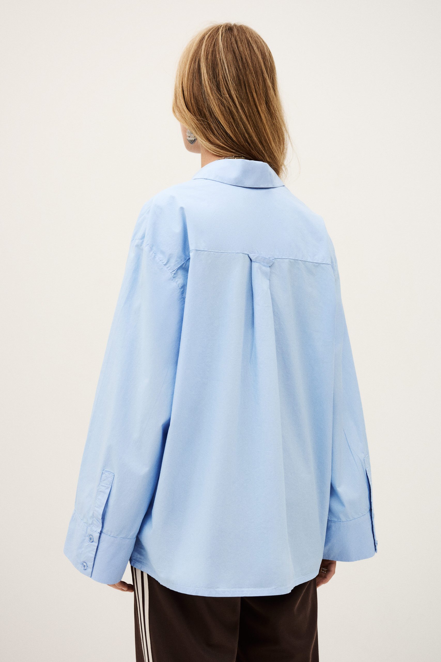 – Loose fit- Long sleeves- Patch pocket- Dropped armholes- Button tab- Double-button cuffs which can be worn loose (pagoda) or narrow (classic)- Made of cottonThe cotton fibers in this model come from organic farming.