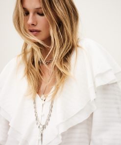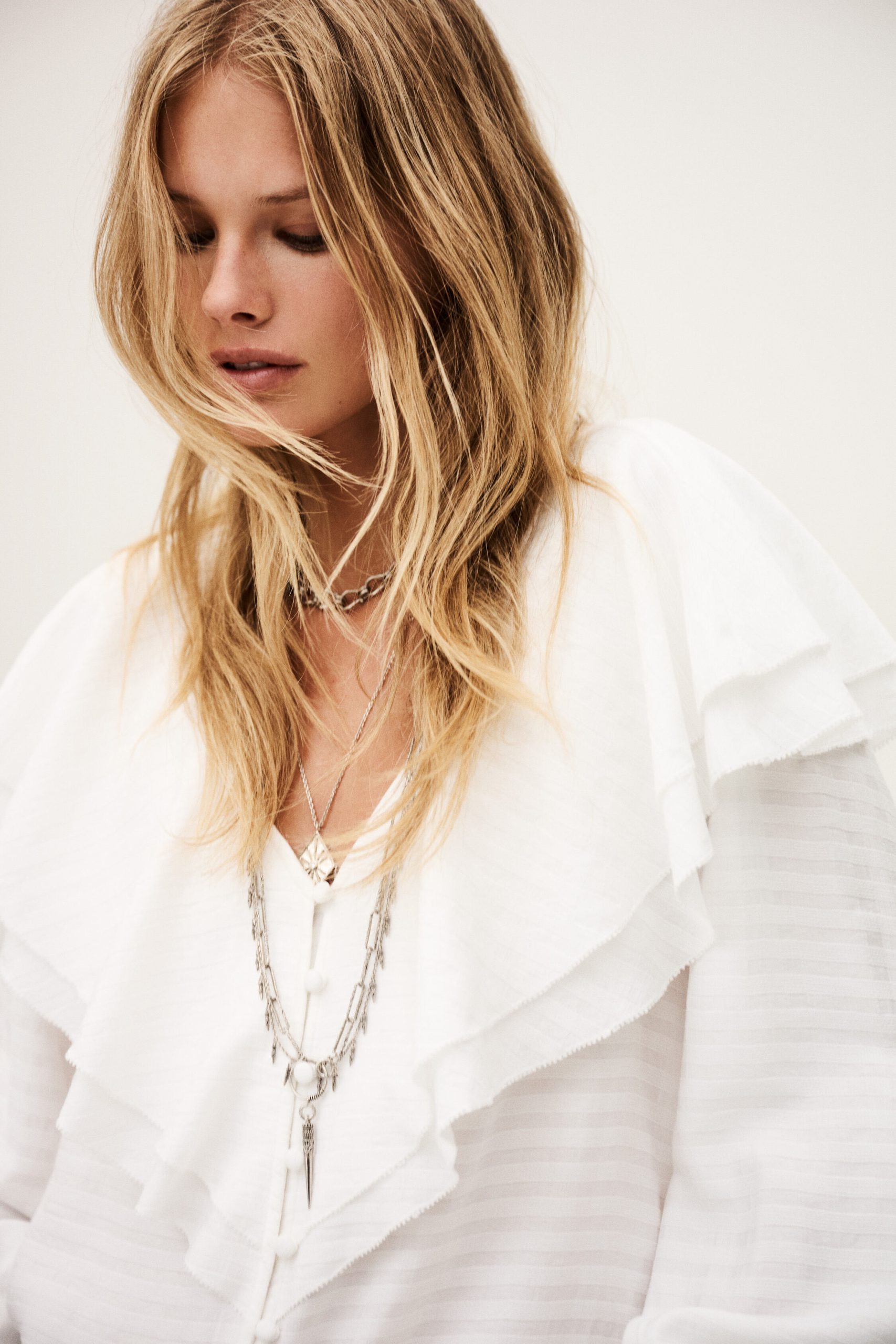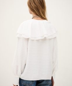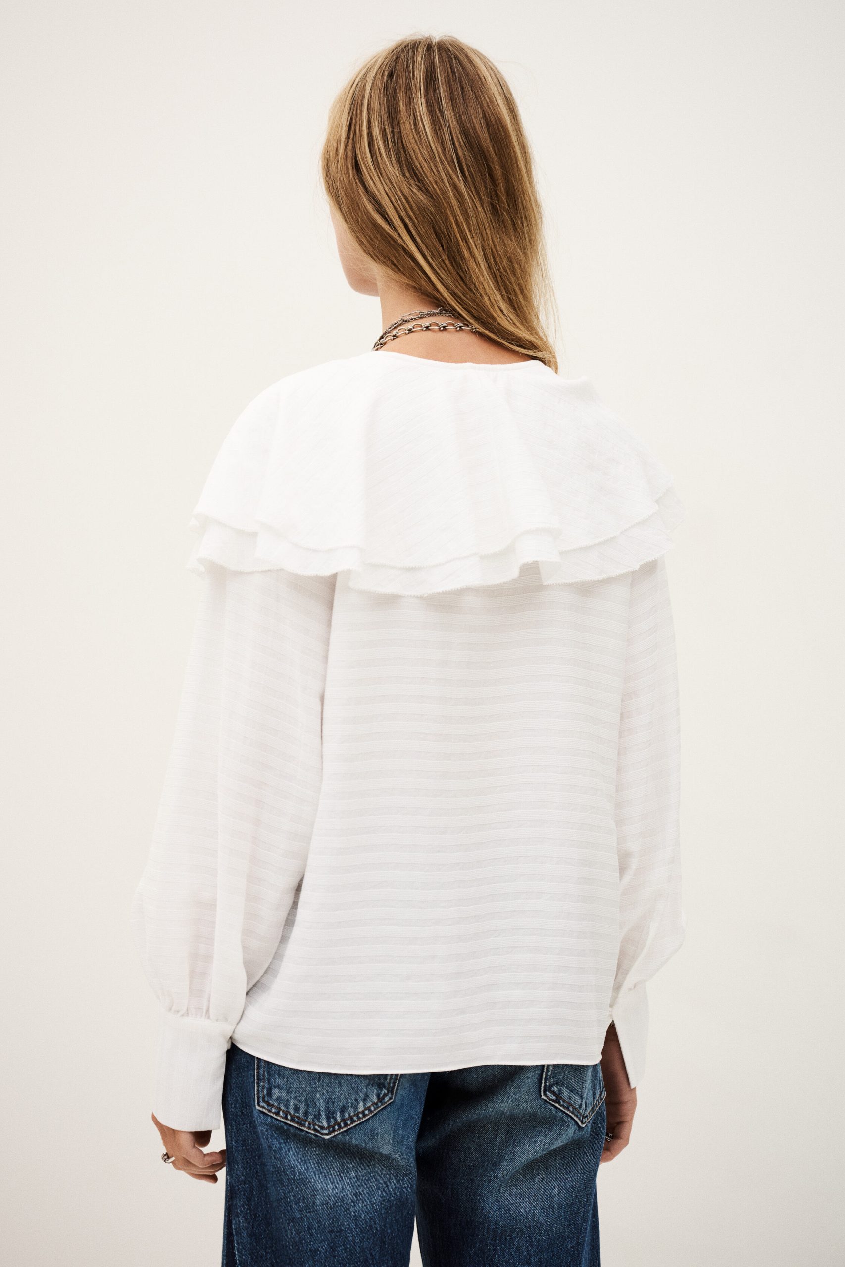 – Loose-fitting- Frilly collar- Long sleeves- V-neckline- Buttoned front- Shoulder slitsThis model contains LENZING™ ECOVERO™ viscose, a fiber made from wood pulp from sustainably managed forests. LENZING™ and ECOVERO™ are trademarks of Lenzing AG.