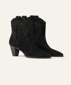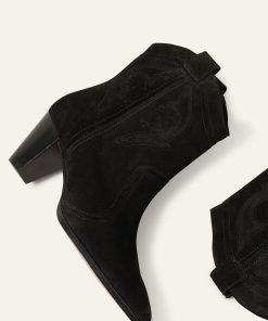 – Cuban-heeled ankle boots- Pull tabs on the sides for easy donning- Double topstitch- Welt and toe- Back counters- Made in Spain- 6.5 cm high heels- Western and cowboy boot style
