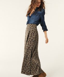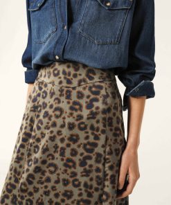 – Long length- Godet style- Leopard print- Triangular cut at the waist- Side zip fastening- This item is made with recycled synthetic fibers.