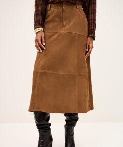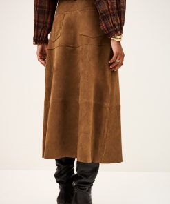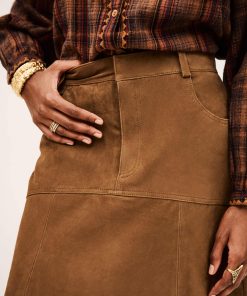 – High, fitted waist- Slightly flared with a godet style base- 5-pocket jeans style design- Double topstitches- Raw edges- Suede materialThis product was made from leather from a tannery certified according to the Leather Working Group protocol.