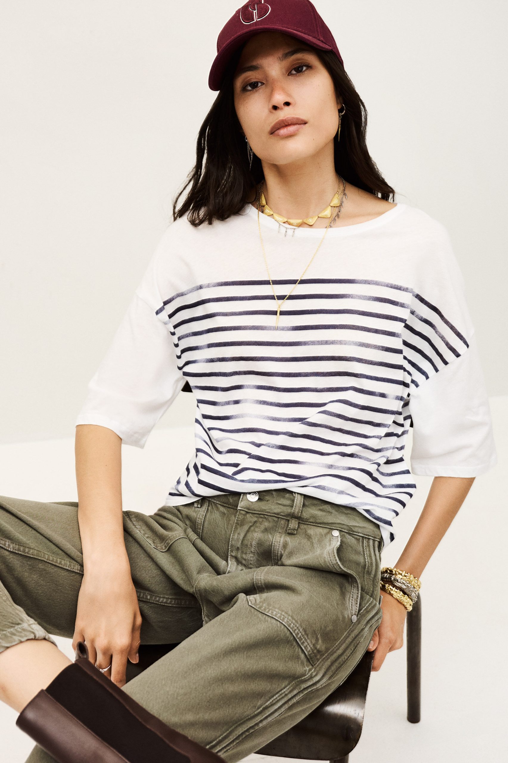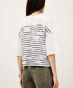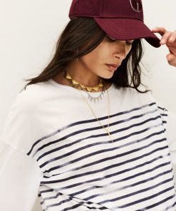 – Loose fit- Boat neck- Vintage style sailor stripes on the front and back- Half-sleeves- Supima cotton- Extremely soft to the touchThe cotton fibers in this model come from organic farming.