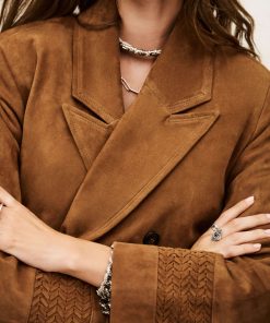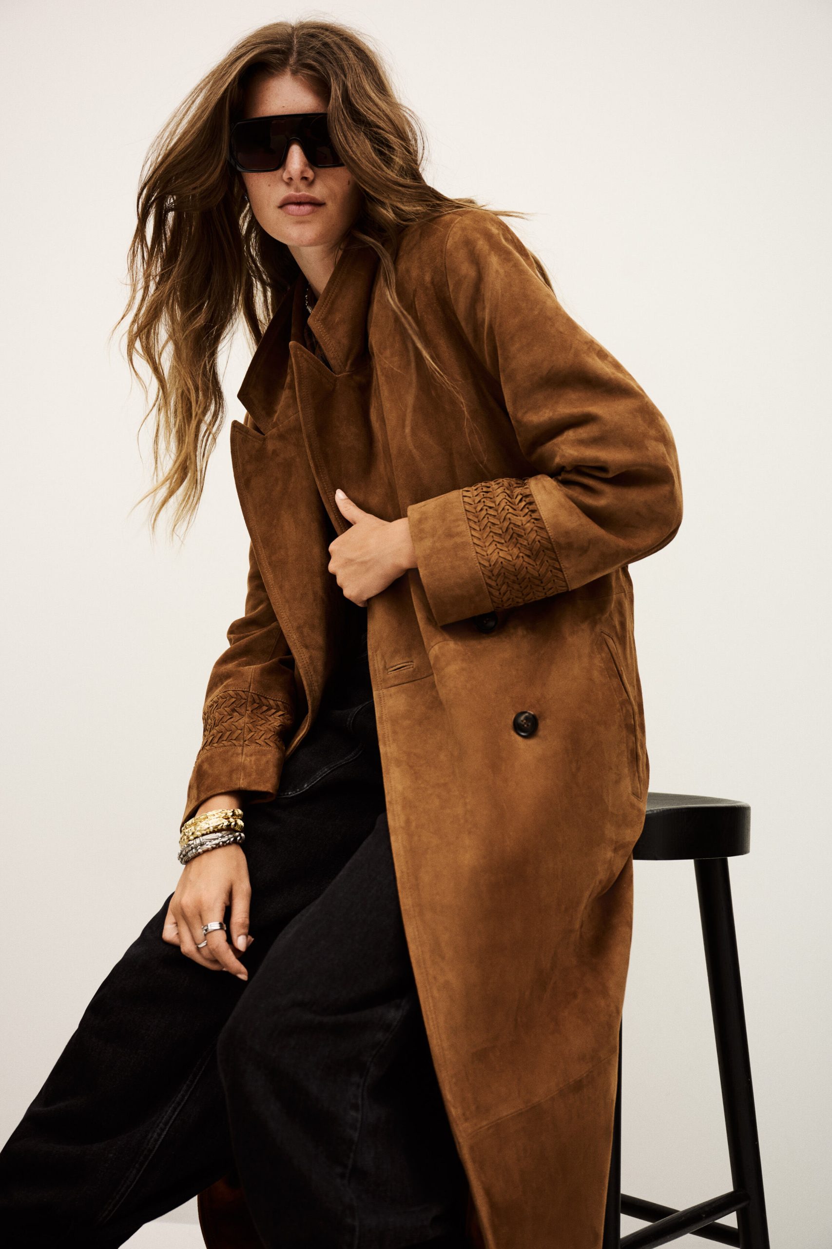 – Super long for a chic, rock ‘n’ roll style look- Suede material- Large rear slit- Lapel- Double-breasted- Embroidered cuffsThis product was made from leather from a tannery certified according to the Leather Working Group protocol.