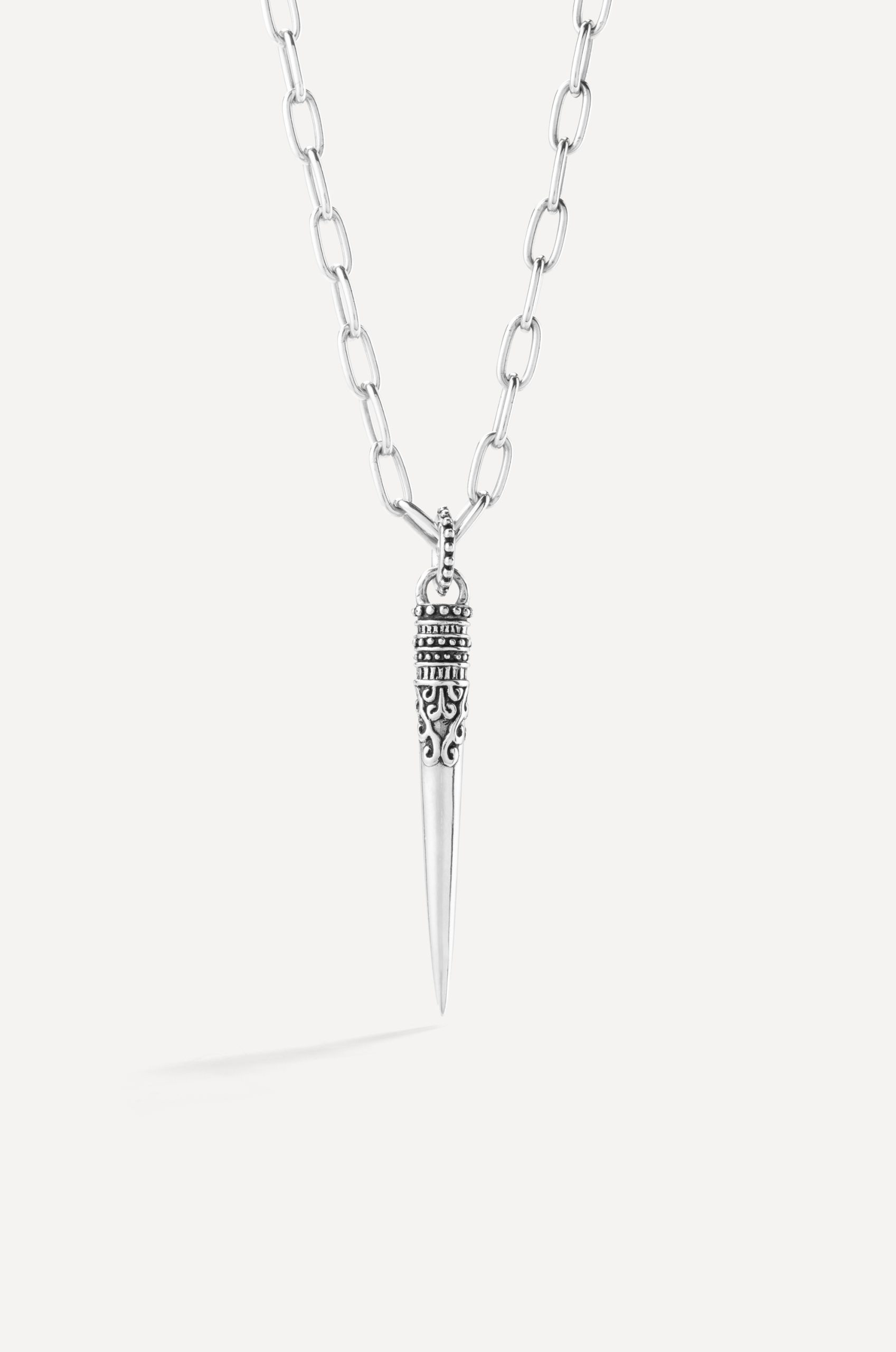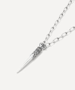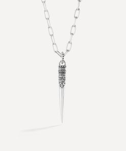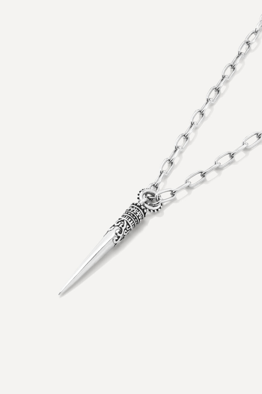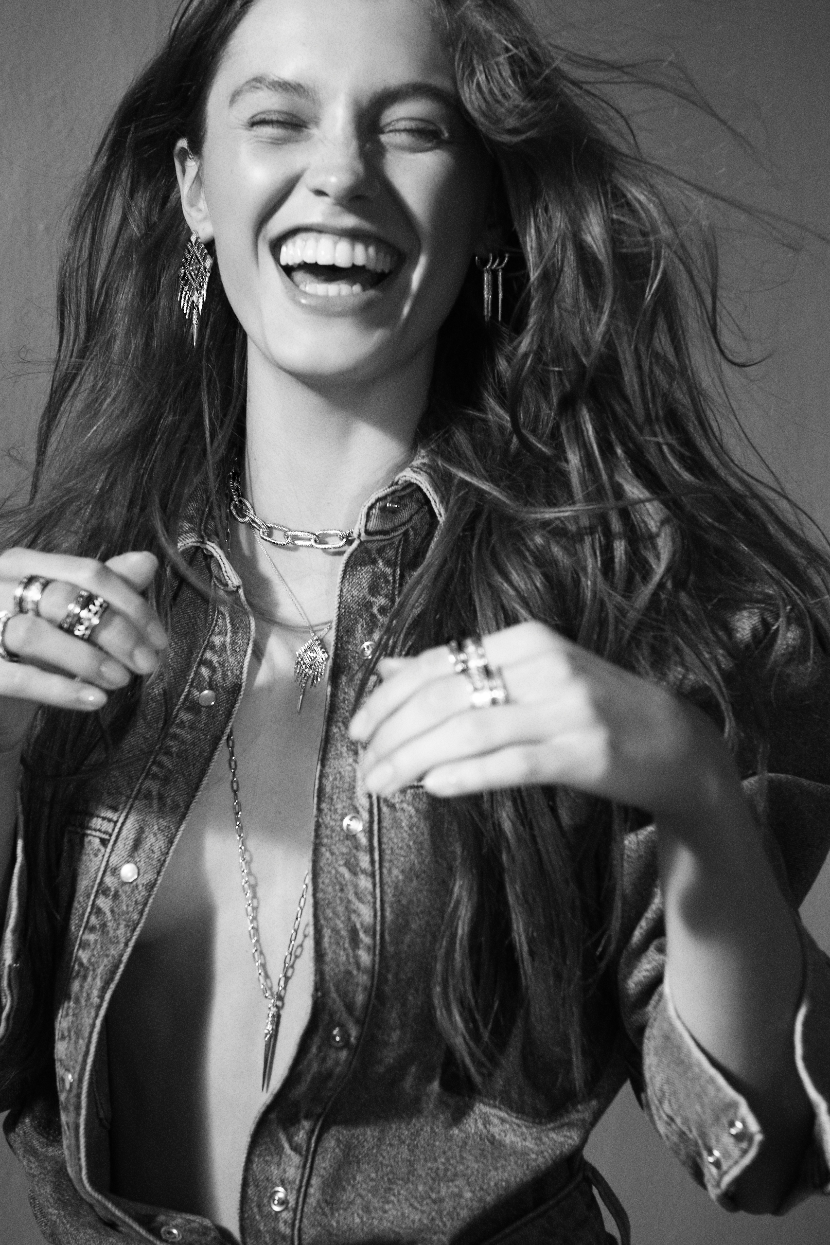 ba&sh jewelry is an ecologically mindful collection with a good dose of rocking bohemian inspiration. These pieces of jewelry are to be handled with gentle care to preserve their beauty. To protect from metal’s natural rusting, avoid humid areas, chemical products and above all, wearyour jewelry! This ba&sh WAKIZA necklace in recycled 925 sterling silver is both modern and exotic. It pairs a trendy minimalist chain with a pointy pendant with laser-engraved motifs. A silver or gilt necklace with authentic and assertive style. – Necklace and pendant in recycled 925 sterling silver- Gilt jewelry in recycled sterling silver with gold plating- Chain, 40cm approx. / Pendant, 4cm approx.- Lead- and nickel-free- Comes in a pouch with a QR code which invites you to discover the story of the collection and our care recommendations.
