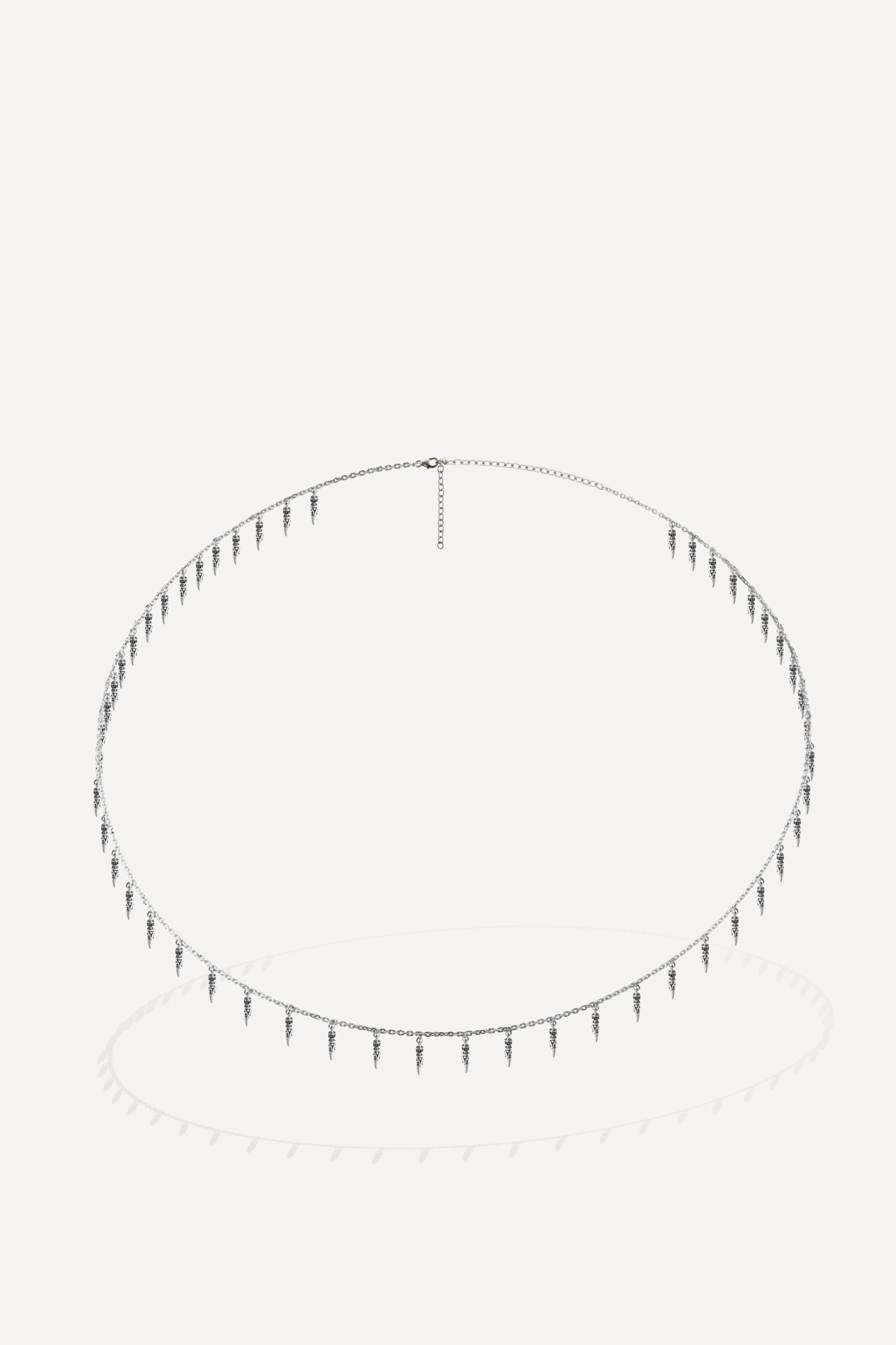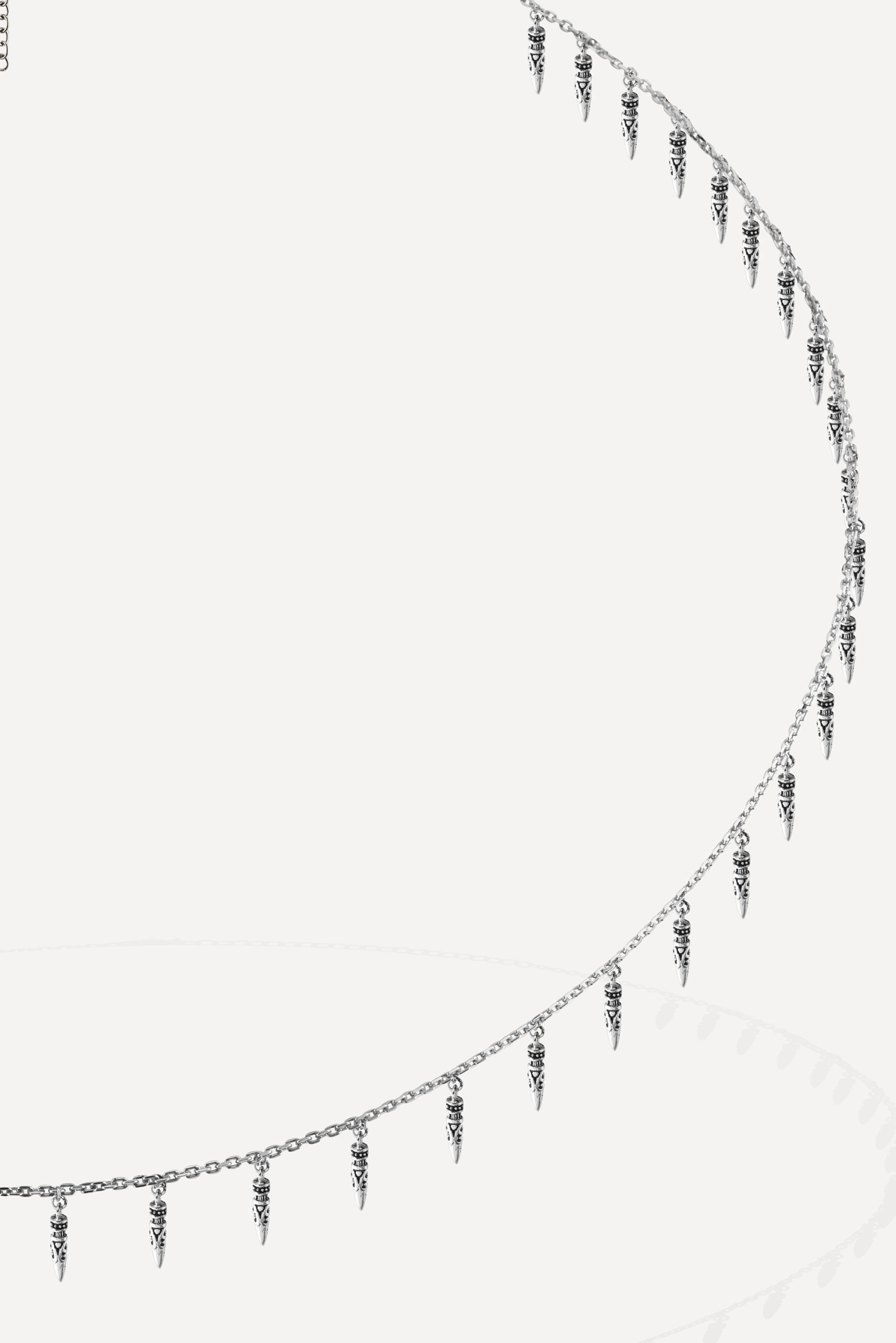 ba&sh Jewelry is an eco-friendly collection made with ample amounts of bohemian style and rock ‘n’ roll flair! Jewelry should be carefully handled and cleaned to preserve its beauty. To prevent its metal from tarnishing, avoid the use of chemical products and keep it away from damp areas. To be safe, wear your jewelry as much as possible! Looking to make an impression? If so, this SURYA body chain will be perfect. It is made of recycled 925 sterling silver (92.5% silver) with an easy-to-use clasp, an adjustable chain, and a thin layer of rhodium to protect against corrosion. We love its fabulously feminine style and delicate pendants. Pair it with a swimsuit or a crop top and some low-rise shorts. – Size: 80.5 cm (31.7 in.)- Silver chain- Thin charm style pendants Get in the habit of removing your gold-plated jewelry before showering. This will help it last longer! With gold-plated pieces in particular, the thin layer of gold can become discolored or flake if exposed to water, soap, or other products.