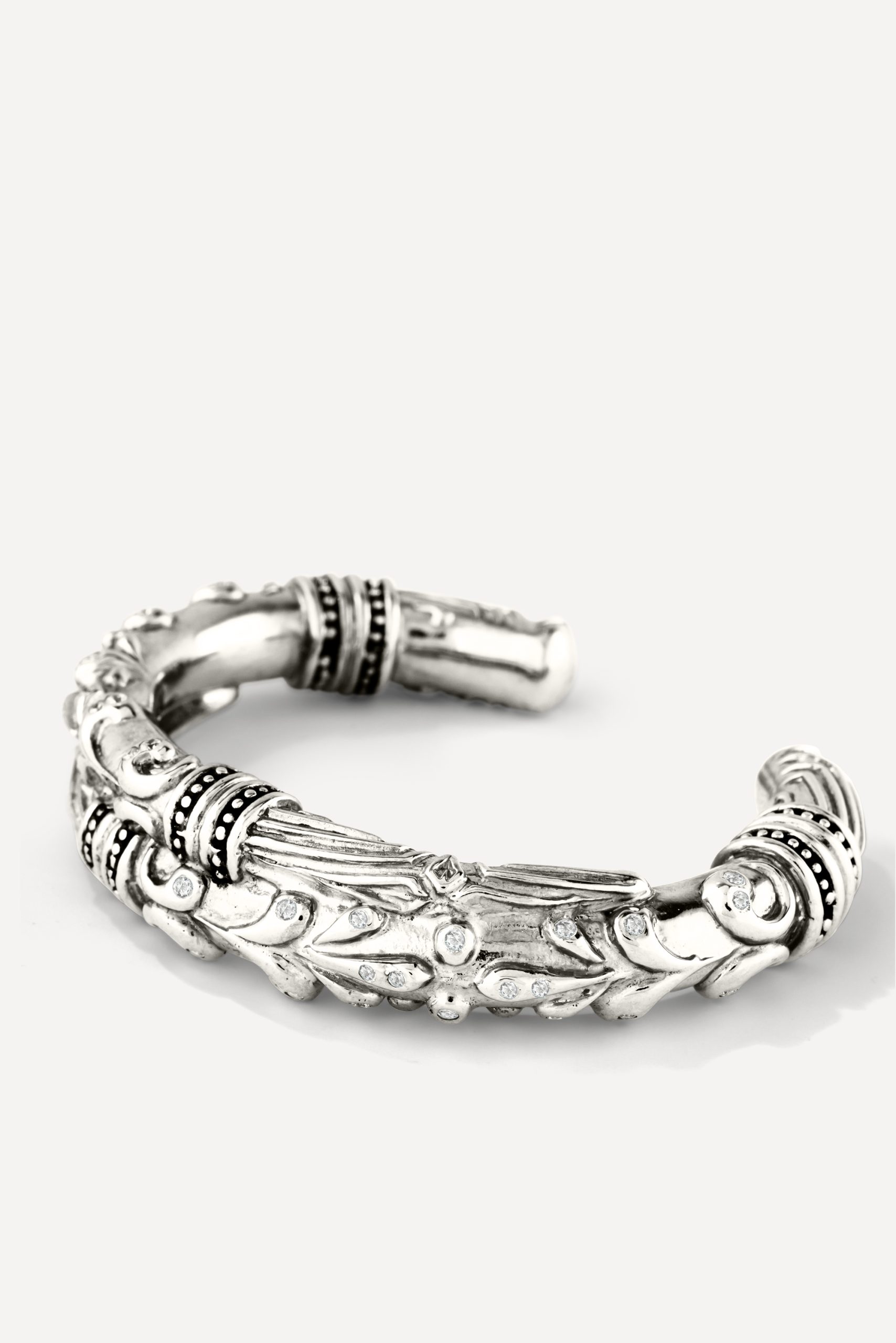 The open JAGG bracelet is a very unique design. Choose between recycled silver or 3-micron gold plating. It is embellished with beautifully intricate details. Arabesques reveal small zircon accents, which catch the light and reflect the sunshine. We love this design, which is styled without a clasp and slides right onto the wrist. The 3.1 centimeter opening makes it easy to slip on, without the risk of losing it. Coordinate it with all your looks!- Wrought metal bracelet- Gold or silver with zircons Jewelry should be handled gently and maintained to preserve its beauty. To protect them from the natural oxidation of the metal, avoid wet areas and chemicals. Make it a habit to remove your gold-plated jewelry before showering to increase its longevity. With gold-plated items in particular, the thin layer of gold will naturally discolor or flake off when it interacts with water, soap and other chemicals.